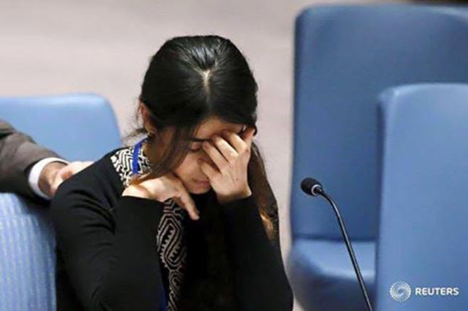 قاموا بأخذي الى الموصل مع اكثر من 150 امرأة ايزيدية أخرى، وفي بناية كبيرة هناك، كانت هناك الالاف من النساء الايزيديات والأطفال يتم اعطائهم كهدايا،