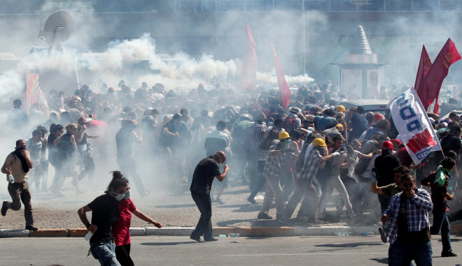 وفي اسطنبول، اطلق شرطيون عشرات من قنابل الغاز المسيل للدموع لطرد نحو 500 متظاهر من حي غوموسويو على الضفة الاوروبية للمدينة بعدما اقاموا فيه حواجز واشعلوا النيران.